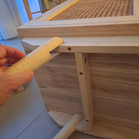 Un pied de mon petit meuble très léger s'est décroché, ou décollé.. (voir photos) en le bougeant.